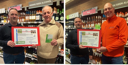 Donderdag 5 februari j.l. hebben we de twee winnaars van de hoofdprijzen van de donateursactie 2025 uitgenodigd. Zij kwamen met hun donatie aan Vlijt en Volharding met de geluksnummers als winnaars uit de bus. Zoals gebruikelijk maken we er een mooi moment van om de hoofdprijs, een waarde cheque van €125,00 te besteden bij PLUS Van Eekelen in Alphen, te overhandigen. Walter van Eekelen was zelf overhandigde de prijzen. De hoofdprijswinnaars waren Jaap Leguijt en Bart Lauwaars. 17 andere prijzen, geschonken door plaatselijke ondernemers en stichtingen, zijn inmiddels bij de winnaars.